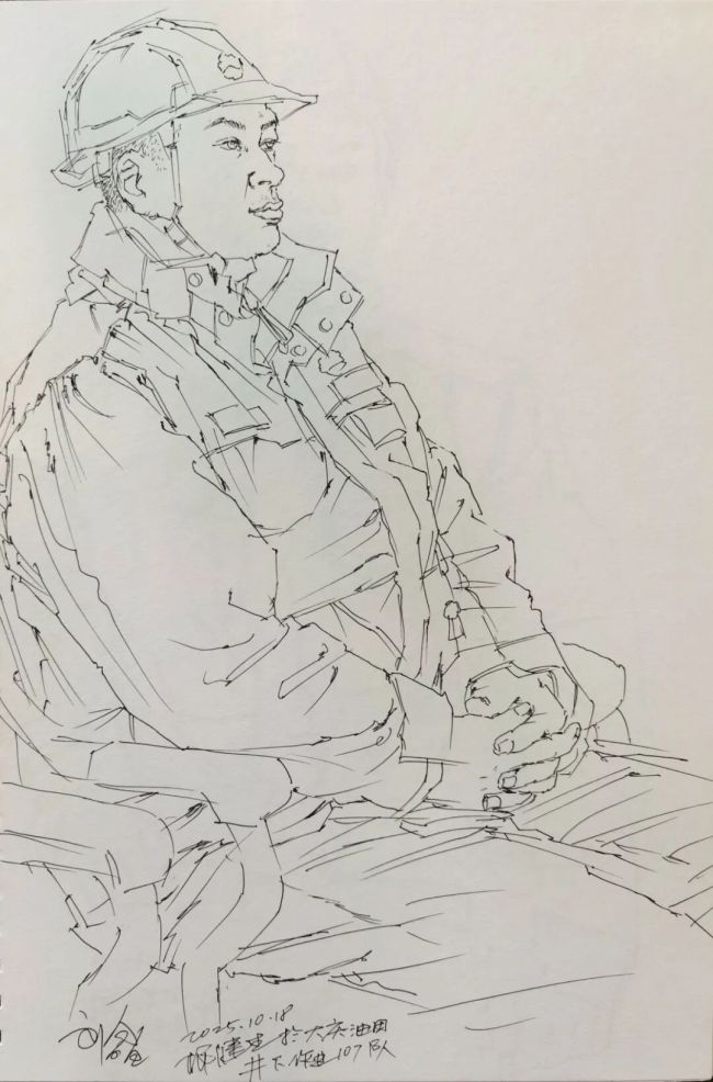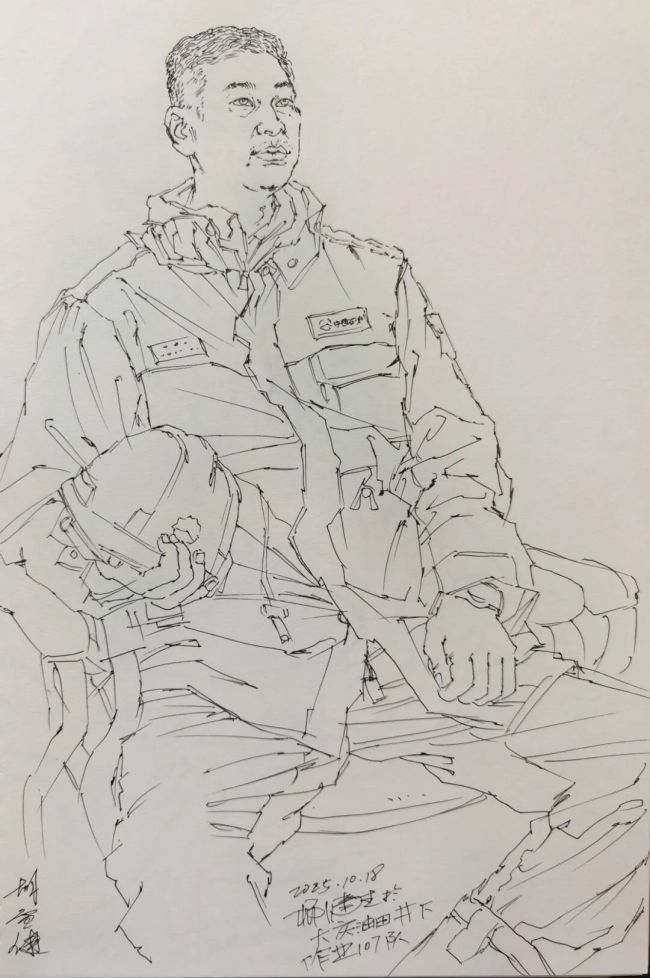 采风第五天,我们还赴中车长春轨道客车股份有限公司参观。这里是我国知名的轨道客车研发、制造、检修及出口基地,是中国地铁、动车组的摇篮。参观车间和厂史馆后,我们在胡俊祥工作室为全国劳动模范罗昭强和胡俊祥画写生。