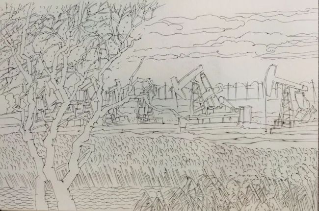 采风第二天上午,我们到井下修井107队采风写生,这是一支从事油、水、气井大修和应急抢险施工的专业化队伍,曾荣获“英雄善战的修井铁军”称号。
